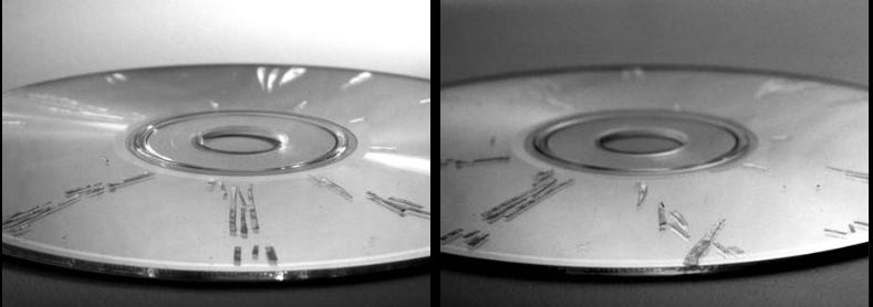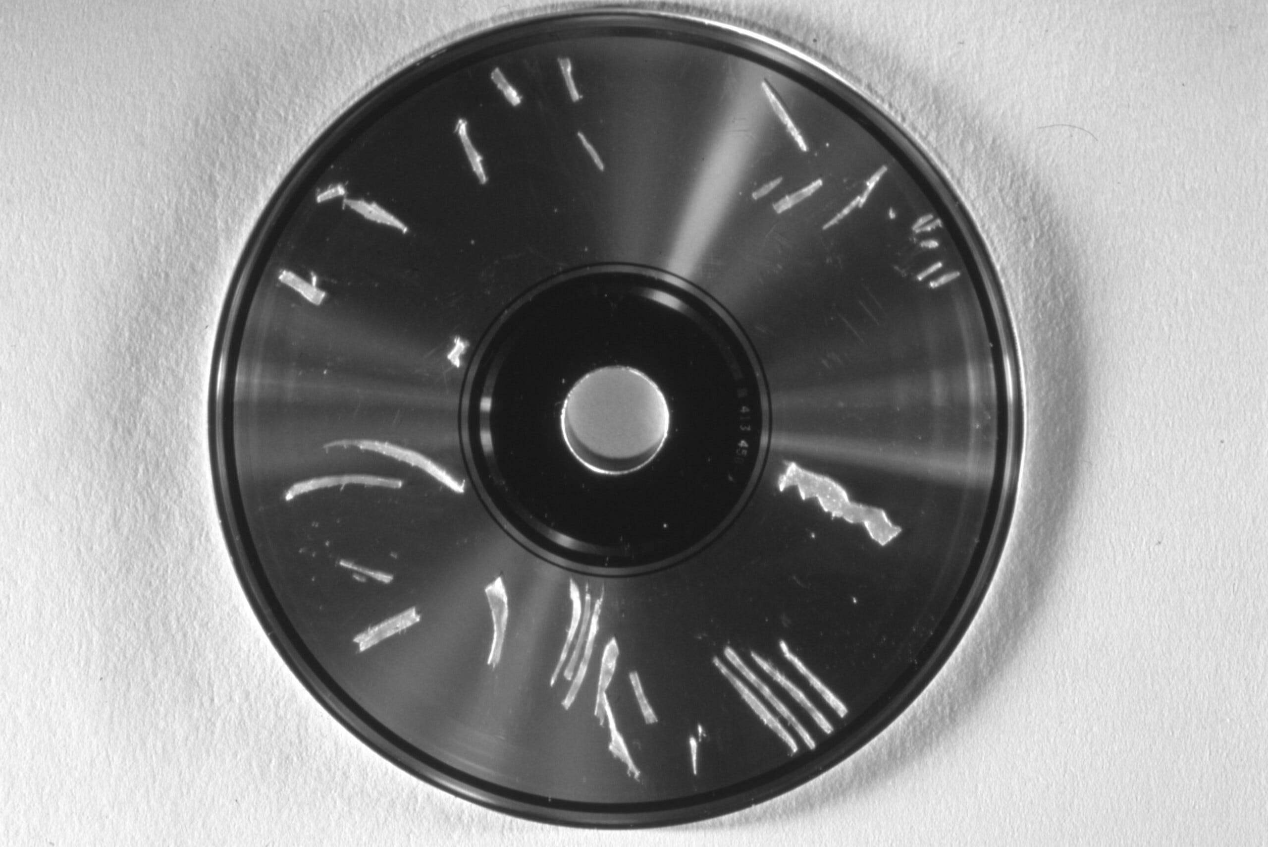 While Marclay and Chavez explore the potentials of an ‘outmoded’ medium that is already obviously noisy to contemporary ears, Yasunao Tone’s experimentations with compact discs used – and ‘abused’ –state-of-the-art technology. Formerly an active member of the Tokyo Fluxus movement and the free improvisation collective Group Ongaku, Tone began to experiment with CD technologies in the early 1980s. At the time of its emergence, the CD was advertised as a noiseless and timeless technology; Sony and Philips notoriously promoted the new medium under the tagline ‘Perfect Sound Forever’. As noted earlier in this section, the CD is designed with the concealment of noise in mind: the effects of noise and error are minimized by an error correction system before they can reach the ears of the listener. It is these hidden, inaudible noises that Tone sought to unlock by overriding the error correction system of the CD player. By modifying the surface of the disc, the CD began to act differently in the playback in ways that had not been intended by its designers: