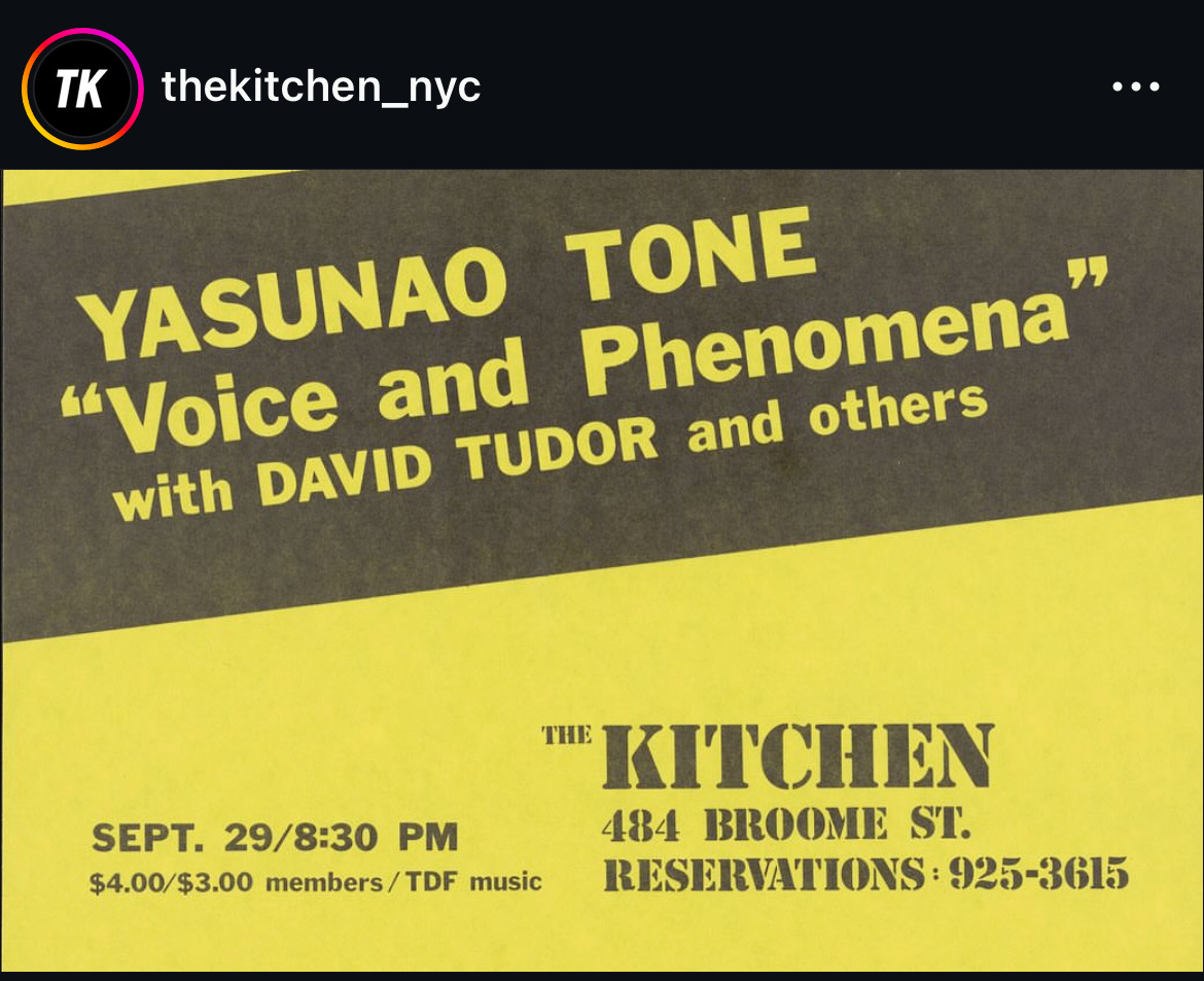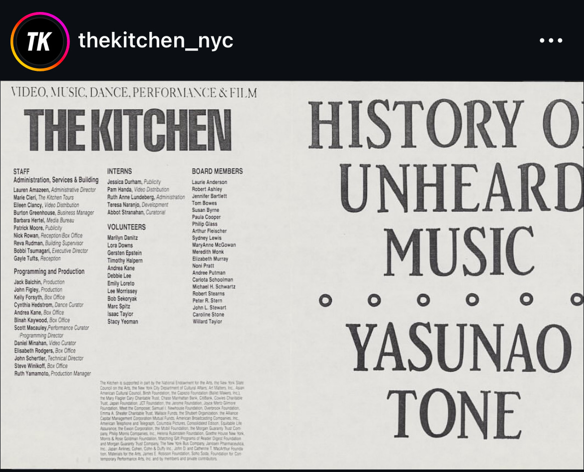The Kitchen, another of New York’s most important remaining art spaces that has always included experimental music and sound in their programming, reflected upon their long relationship with Tone, sharing some archival images.