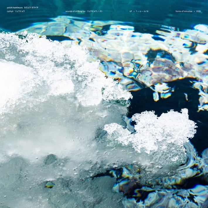 Yoichi Kamimura must have had a sinking feeling when local elders informed him that despite all his hard work and years of field recording, he had failed to capture the true sound of Ryūhyō-Nari (drift ice noises). Undeterred, the artist continued to record and preserve the sounds of the Sea of Okhotsk, year after year, producing a snapshot of what Ryūhyō-Nari sounds like today. These may not be the same sounds that prior generations experienced, but perhaps new sounds, themselves endangered, which forty years from now may be recalled with a similar blend of nostalgia and sorrow. ryūhyō is the third installment of forms of minutiae’s ice series, which is part of UNESCO & WMO’s Art for Glaciers Preservation; by year’s end, we will hear two more.