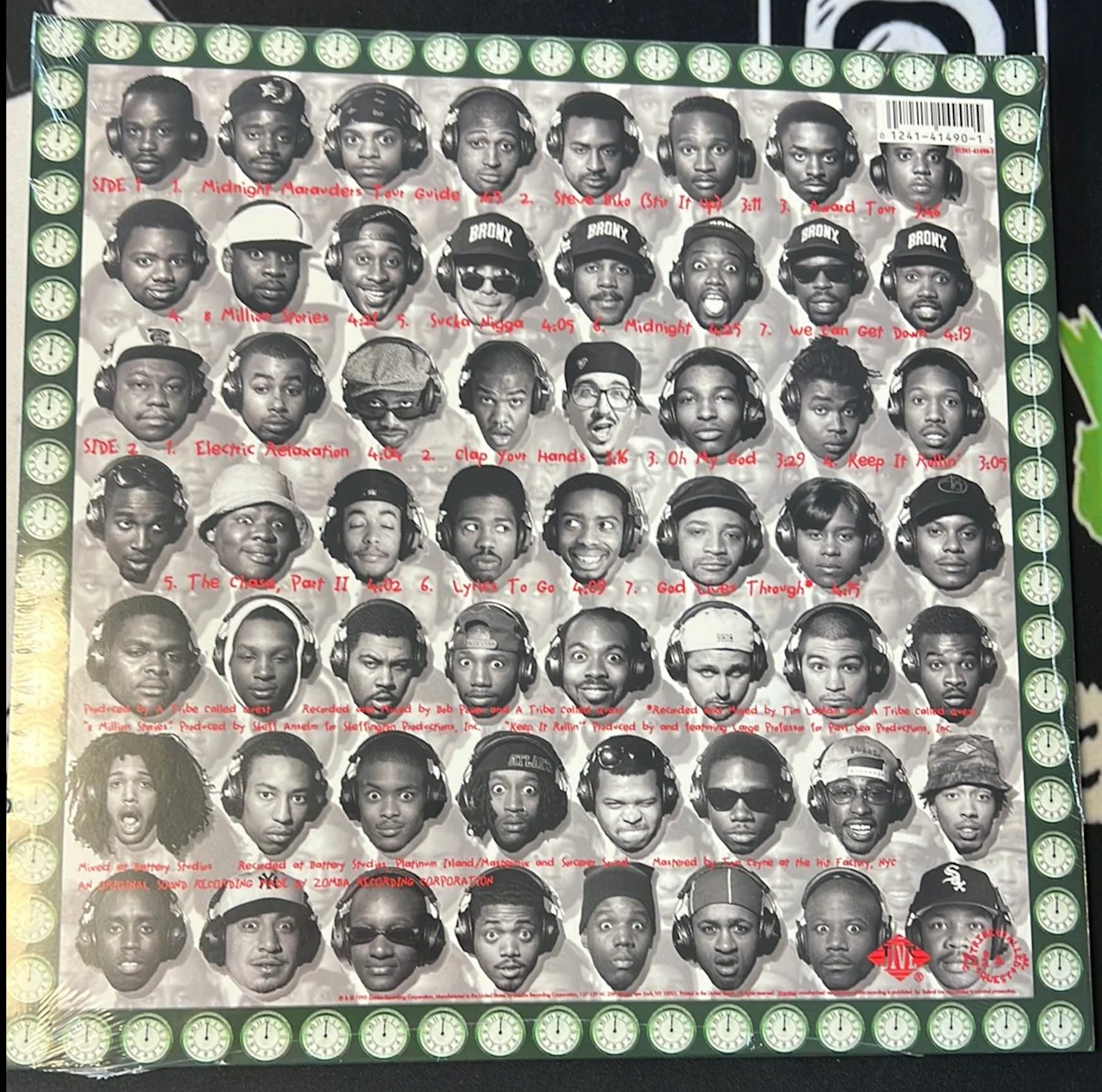 Tribe knows all about vibes. The American hip hop group A Tribe Called Quest took the form to a different place with their third album, Midnight Marauders, which features dozens rappers, producers, and DJs across its front and back covers. (List) In retrospect, the face-forward grid recalls the hyperrealism of Zoom meetings. Ego Trip's Book of Rap Lists identifies 71 different hip hop figures, from the iconic to the unknown. These include many NY hip hip legends, including the Native Tongues crew of which Tribe were a part (alongside the Jungle Brothers and De La Soul), but also artists from the West Coast, from the underground, the mainstream, and beyond. (Despite the inclusion of both Stetsasonic and De La, noticeably absent is DJ Prince Paul, but word is this wasn’t an intentional snub.) Writing for Complex, Andrew Noz describes the cover of Marauders as one of hip hop's "last grand displays of cultural unity as the Coastal fallout loomed imminent," and before the “Jiggy” era signaled a decisive realignment between the real and the commercial.